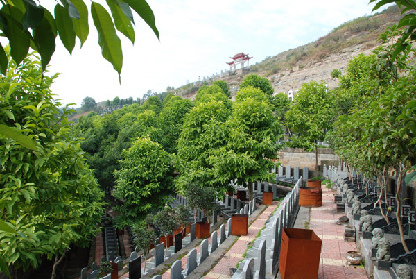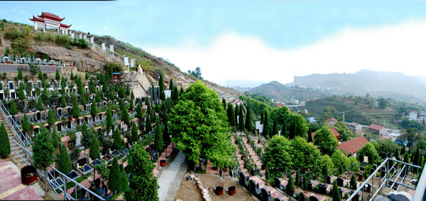 墓园绿树成荫,繁花锦簇。已建成的茶花园、桂花园、柏灵园等十几个墓区自成体系,又相互关联浑然一体。每个墓区都植有代表植物,以茶花、茶梅、桂花、杜鹃、刺柏、九里香、黄桷兰等名贵植物为仪树,山林气象悠然恬静。