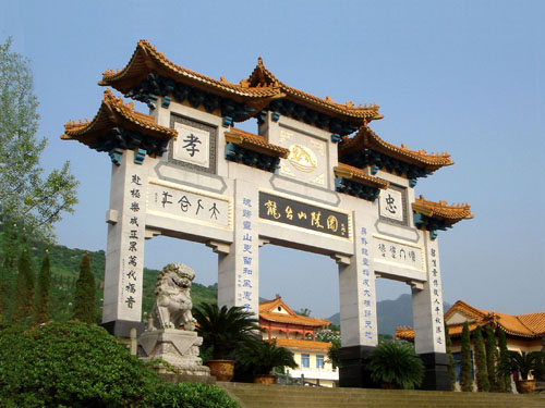 龙台山陵园是国内著名的立体生命档案馆,也是海外闻名的人生福寿后花园。亭台楼阁掩映于湖光山色之中,长廊水榭沐浴在夕阳金光之下。浑出天然,回肠荡气;天籁含情,心香不灭。正是: