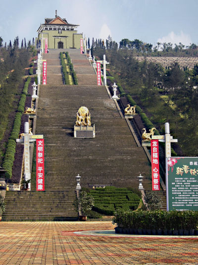 b.祭坛:祭坛是举办大型祭祀活动的区域,也是陵园最重要的精神象征。祭者藉此获得心灵的安慰、精神的鼓励和道德上的自勉。“慎终追远”、“敬天法祖”的民族孝道在此得到文明理性的表现,中国传统仪礼仪规也得以回归和提升。